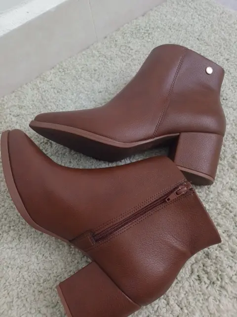 Botas cortas tacón cuadrado. Hermosas botas, número 24 seminuevas, forro y plantilla suave, marca vizzano. Forro textil , Corte y suela sintético, hecho en Brazil.