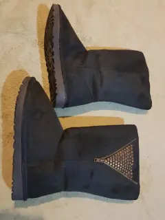 Botas de tela super calientitas y comodas, con suela plana y detalle de eatoperoles y cierre dorados. Ideales para temporada de frio ya que tienen peluche por dentro.
