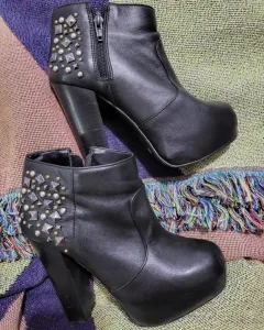 Botas de tacón y plataforma, tienen estoperoles en la parte de atrás, son súper cómodasTiene un mínimo detalle en la parte de atrás, un rasponcito que casi no se ve esta en la última fotoTacón 12cm