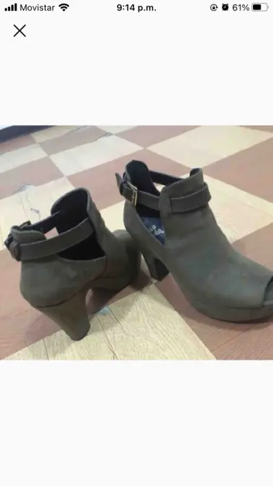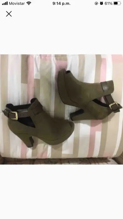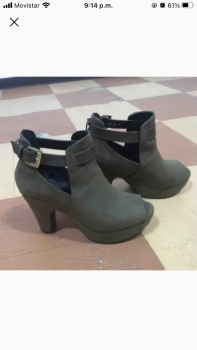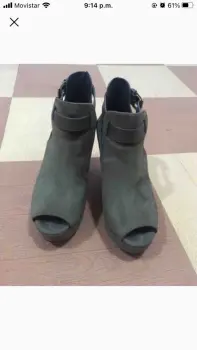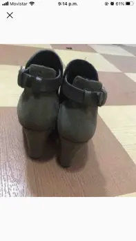 Bonitas botas verde olivo del número 4, tienen plataforma que los hacen súper cómodos. Tacón de 10 cm, son de gamuza. Sin ningún detalle y en perfecto estado.