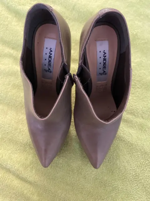 Botín. Botín marca Andrea del número 3 y altura de tacón de 14 cm tiene un color entre cafe claro y gris