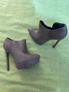 Botín marca Andrea del número 3 y altura de tacón de 14 cm tiene un color entre cafe claro y gris