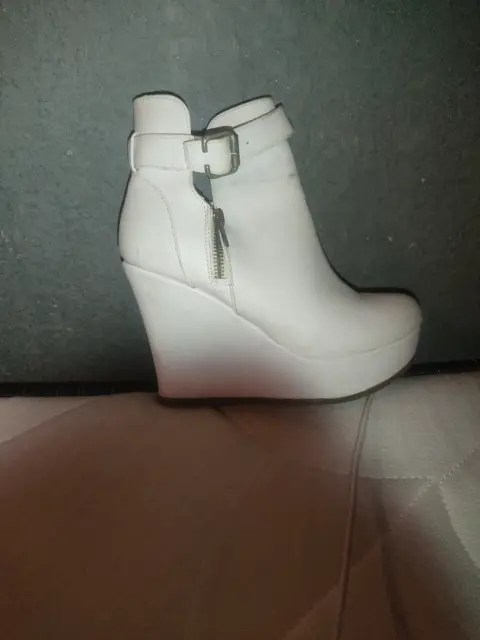 Botin blanco. Botin blanco de plataforma súper comodo detalles solo de uso nada q afecte solo s usaron una vez en excelentes condiciones