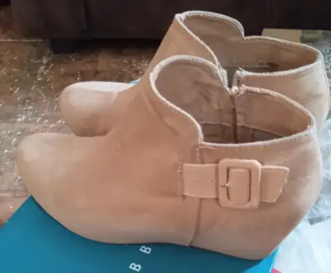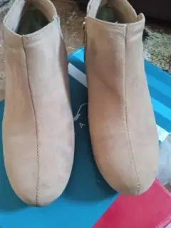 Hermosos y cómodos botines tipo gamuza,color café claro, con tacón invisible, en perfecto estado.