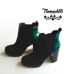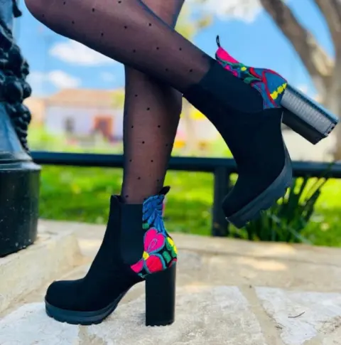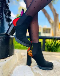 Botín con bordado artesanal. Botín de tacón del 10 cm de gamuza con bordado en la parte de atrás muy cómodos file a su talla.