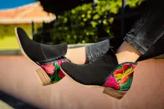 Botín diseño artesanal. Botín estilo vaquero en color negro con bordado en la parte de atrás fiel a su talla.