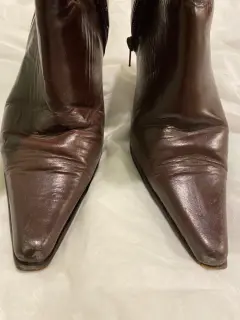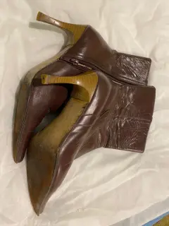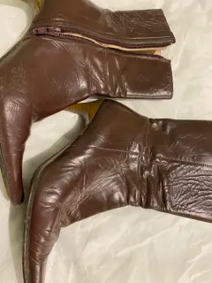 Botín en piel color café No 24. Botín color café corte en piel, forro en piel súper suave, suela en cuero, tacón 8.5 cms. Alto de la caña 18 cms