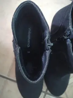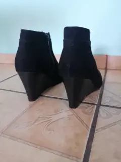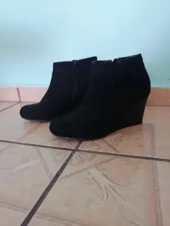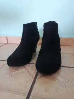 Botín moderno de gamuza. Tacón de cuña, muy cómodos, punta redonda, con cierre a un costado