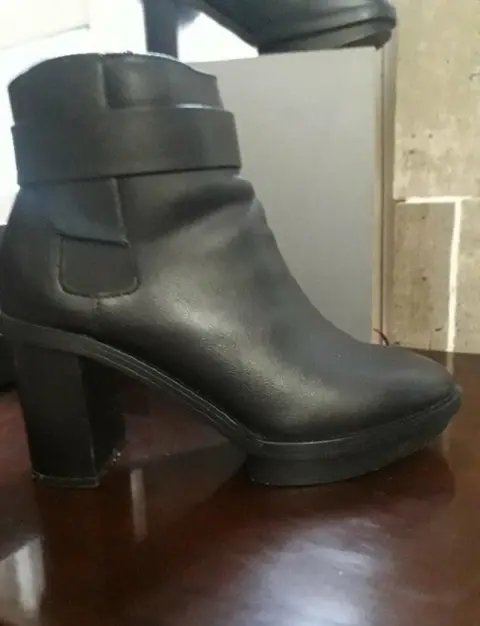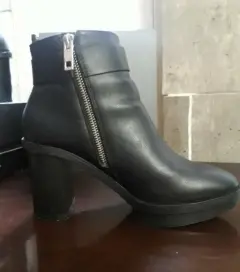 Botín negro con tacón ancho y plataforma, muy cómodos, poco uso, en perfecto estado.