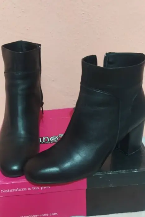 Botines negros con agujetas.Altura de tacón 7cm.Suela 1.2cmSin ningún detalle, una sola puesta.
