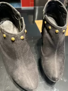 Bonito botín negro, textura gamuza, talla 25, altura 14 cm, muy cómodos, en buen estado.