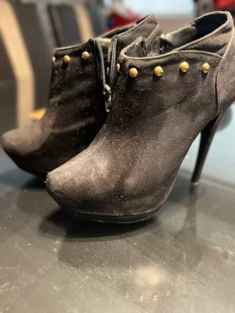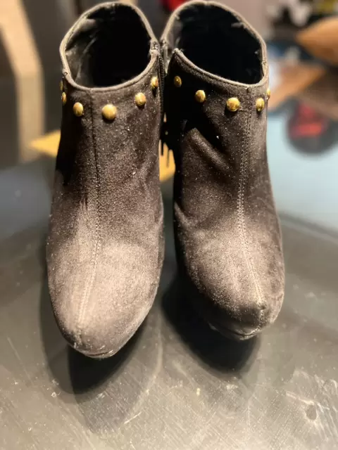 Botín negro, textura gamuza. Bonito botín negro, textura gamuza, talla 25, altura 14 cm, muy cómodos, en buen estado.
