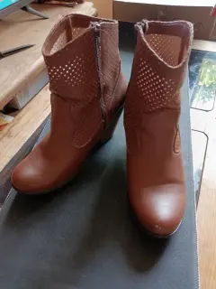 Botin vaquero café No.6. Lindos botines vaqueros para dama, cafés, calados,tacón 7 cm, No. 6