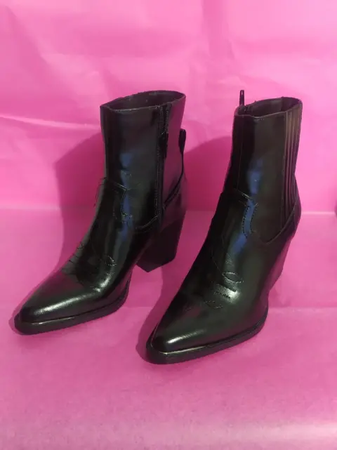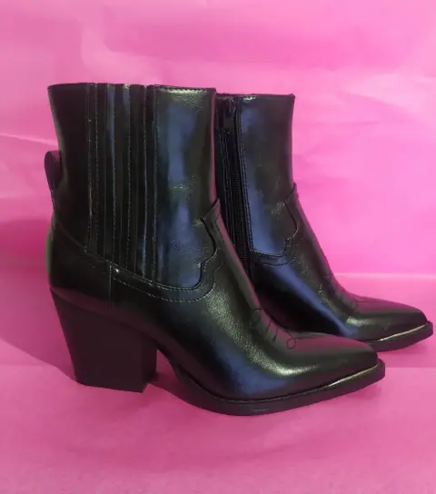 Nuevos. Botin estilo vaquero con punta plateada. En su caja original. Taco medio cubano. Va con todo tipo de outifit. Quedan arriba del tobillo. Fiel a su talla.