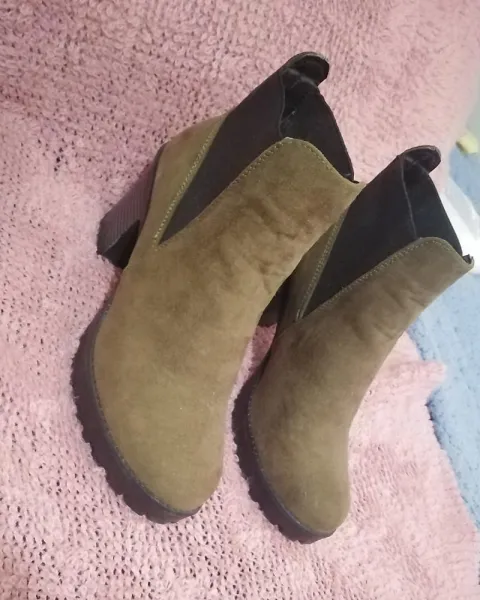 Botín verde de gamuza. Botín con tacón muy cómodo, tacon de 7cm solo se usaron una vez