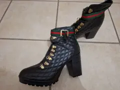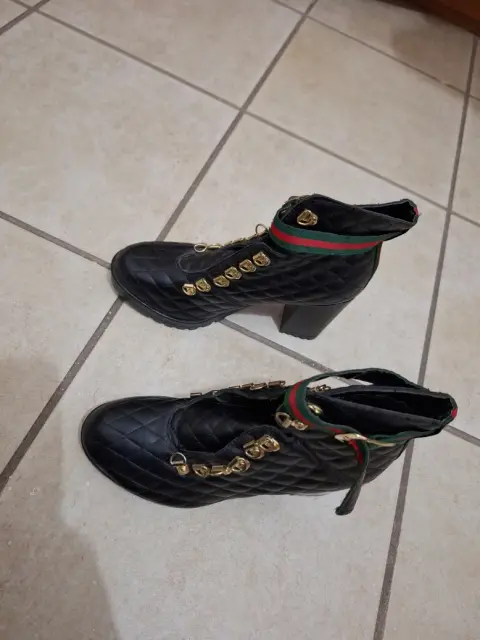 Botines en color negro con ganchos para agujetas, se entrega sin agujetas, piel sintética, tacón de 9cm. Talla 5
