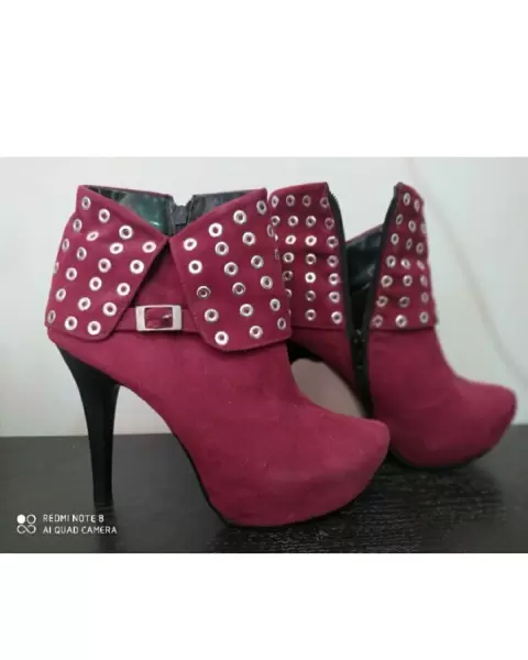 Botines. Botines muy cómodos. Altura del tacón 10cm. Tienen plataforma interna, lo que los hace muy cómodos.El color es como magenta, entre guinda y morado.En excelente condiciones sin ningún detalle