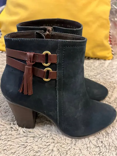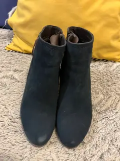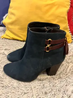 Botines. Botines color azul con detalles en color café, altura 5 cm