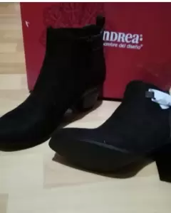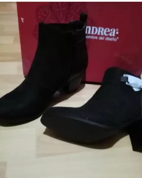 Lindos botines en color negro de la marca Andrea, complétamente nuevos, para cualquier evento ya que combinan con todo.Conquista a todos junto a este botín con texturas al contraste, aplicaciones metálicas y cómodo tacón robusto.Altura 7Color Negro Tipo Ankle boot Material:Textil Ocasión:Vestir♡ Envío todos los días♡♡♡♡ Resuelve todas tus dudas antes de comprar♡♡♡