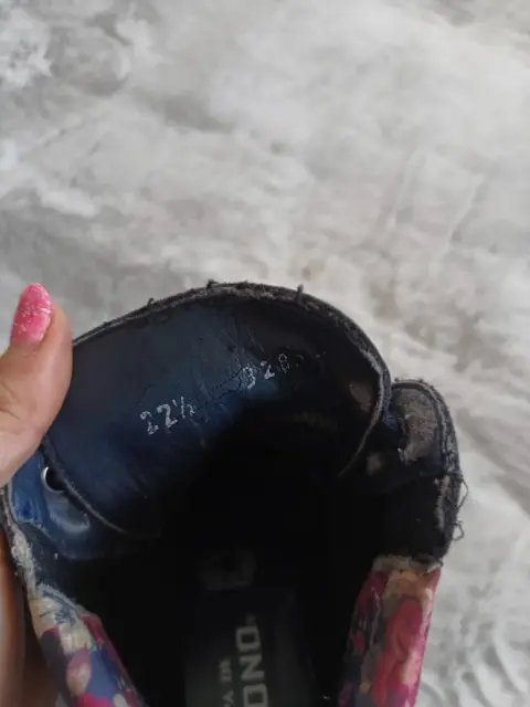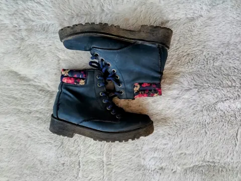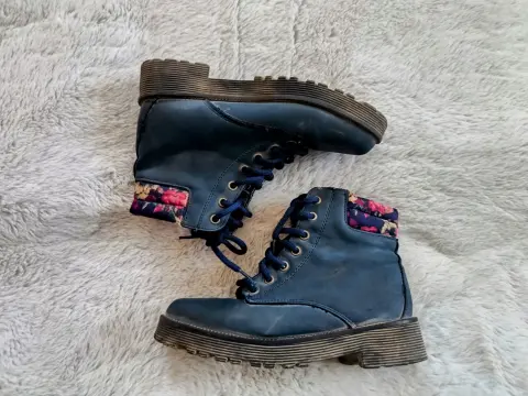 Botines azules y floreados. Estos bonitos son de color azul con detalles florales. Son del 2 1/2 y sus detalles son visibles en las fotos. La suela está sucia, pero para el envío se irá limpia