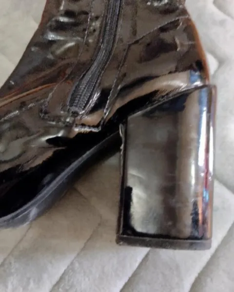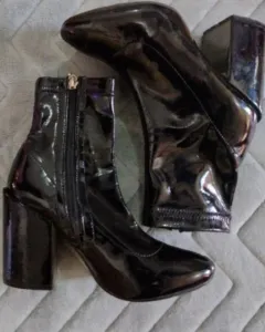 Botines charol Capa de Ozono. Botines charol con tacón cuadrado, mide 10 cm, vienen fiel a su talla. Los detalles no se percatan pero estan en las imagenes.