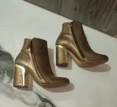 Botines cklass. Descripción:Están hermosas, se ven genial con prendas formales, tiene ya sus detalles en la parte del tacón pero aun se conservan bien, el color se ve café pero tiene un tono como verde olivo dorado