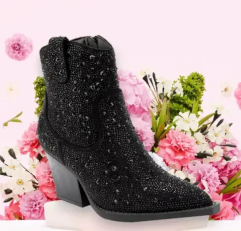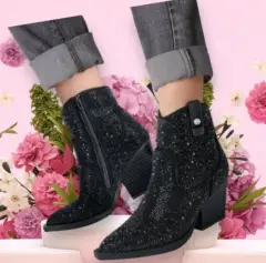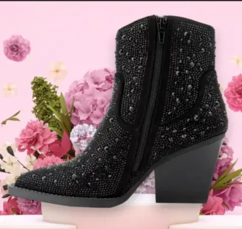 Hermosos botines con diseño en pedrería, lo cual hace lucir increíble, marca Thalia Sodi, color negro, corte texano, altura de tacón 8cm, se pueden utilizar con outfit casual. Animate el diseño es único 😍