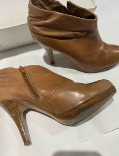 Reestrena. Hermosos botines, muy combinables con short , falda, jeans, vestidos y hasta pantalones. Son de piel por fuera y cuero por dentro, evita que se descarapelen. Tiene detalles en el talón cómo se muestra en la última foto. Son color camel. Tacón 9 cm. Se usaron poco.PRECIO ESPECIAL POR ARMAR TU OUTFIT EN MI CLOT