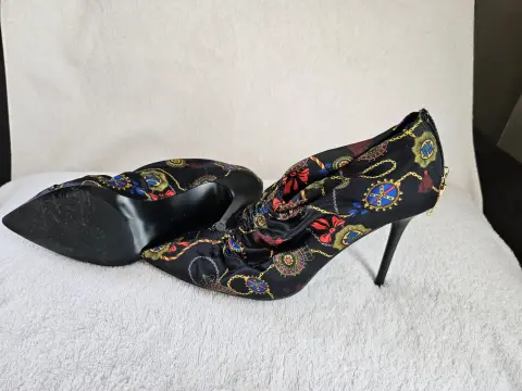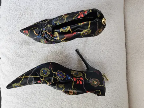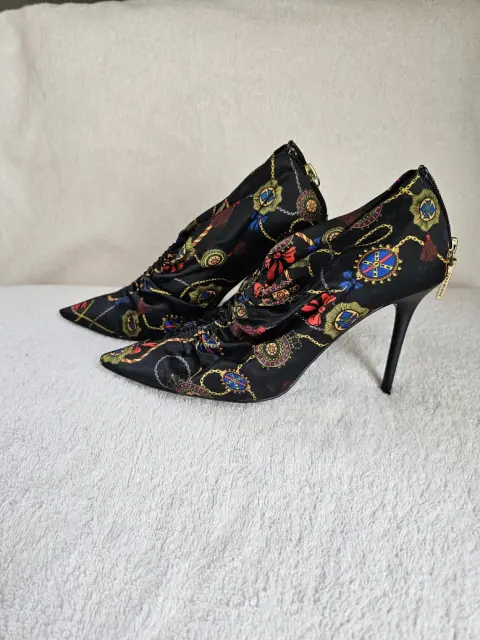 Botines de cadena Zara. Botines tacón alto, negros estampado de cadena, elegantes, muy combinables.