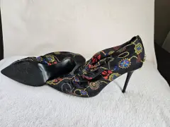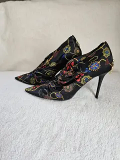 Botines tacón alto, negros estampado de cadena, elegantes, muy combinables.