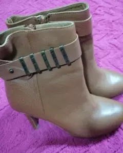 Botines de cinto con hebilla. Hermosos botines con plataforma..Detalle de cinto con evilla a los ladosColor camelAlto:10 cm3.5