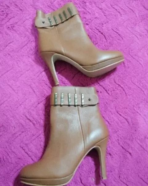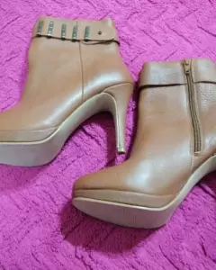 Hermosos botines con plataforma..Detalle de cinto con evilla a los ladosColor camelAlto:10 cm3.5
