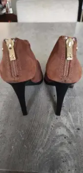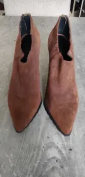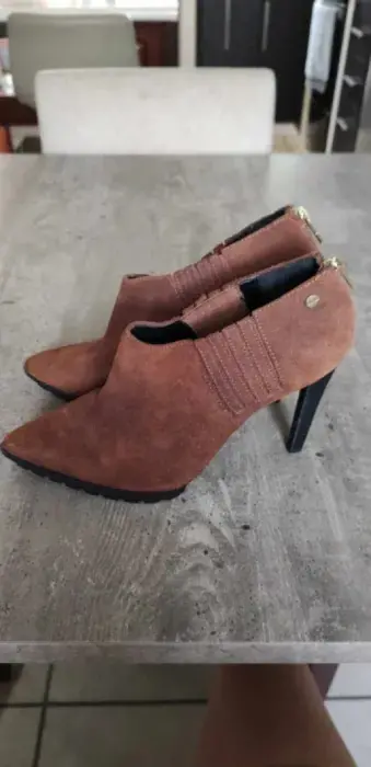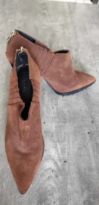 Botines de gamuza. Botines de gamuza color café, marca Calvin Klein, #25, tacón de 10 cm