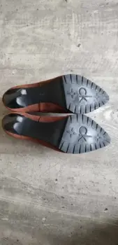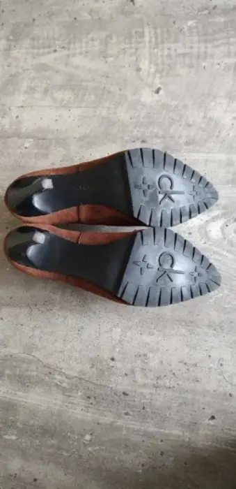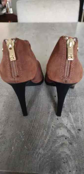 Botines de gamuza color café, marca Calvin Klein, #25, tacón de 10 cm