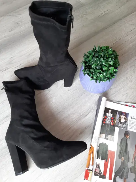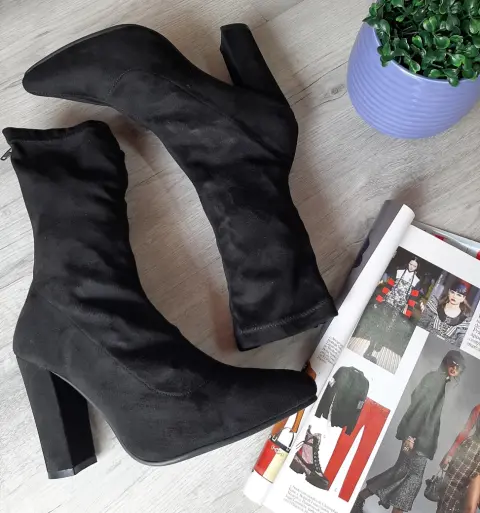Padrísimo modelo de Botin en color negro de gamuza elastizada con tacón de 8 cm de altura. De caña larga y punta que estiliza y define la silueta. Puedes usarla de día o noche con tus prendas favoritas. Ideales para la siguiente temporada 🍁🍂