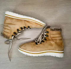 Botines de Gamuza Cliffs talla 7/5 americano dejo la medida con cinta métrica para que ustedes calculen si les queda.Toma en cuenta que es second hand favor de revisar todas las fotografías, está en buen estado sin embargo puede presentar signos de desgaste en algunas partes de su estructura.Revisa la descripción y fotografías con detenimiento para que tu compra llene todas tus espectativas.