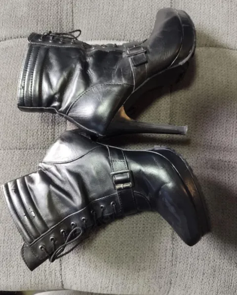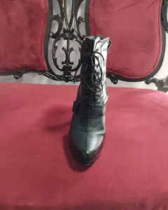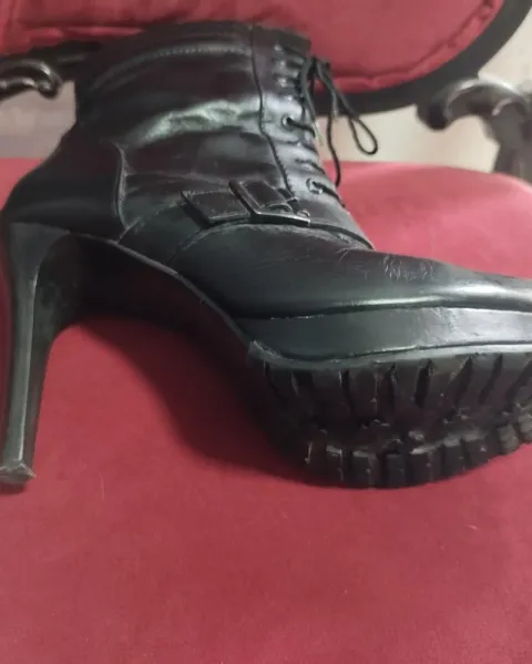 Hermosos botines negros tacón 10 cm plataforma 1.5cm. Con cierre en los costados y agujetas al frente. Estan en perfecto estado. Corte vacuno, forro textil, suela sintética. Talla 24 cm (4).