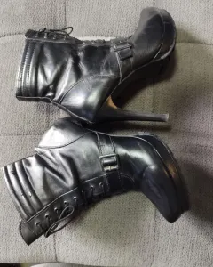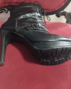 Botines de piel. Hermosos botines negros tacón 10 cm plataforma 1.5cm. Con cierre en los costados y agujetas al frente. Estan en perfecto estado. Corte vacuno, forro textil, suela sintética. Talla 24 cm (4).