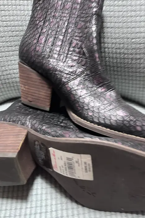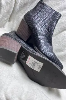 Botines de piel guinda con negro tipo vivora etiquetadas por palacio de hierro en 3600