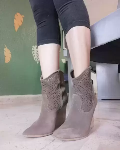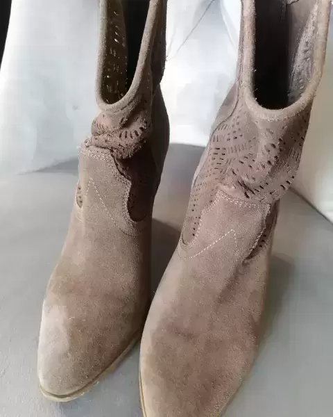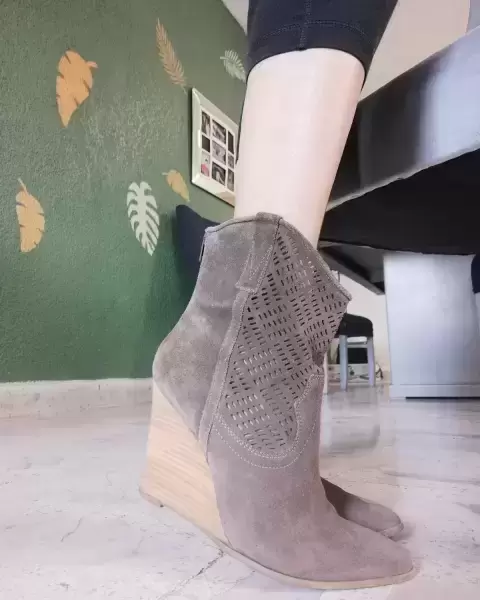 Botines de plataforma. Son de gamuza, el tacón mide 10 centímetros, lucen lindos con jeans, falda o vestido, traen un pequeño desgaste en la parte de adentro, pero no afecta nada su estilo y tampoco se nota. Fuera de eso están en buenas condiciones.