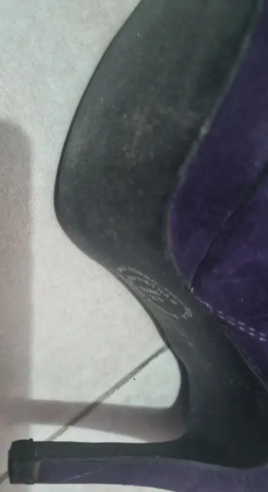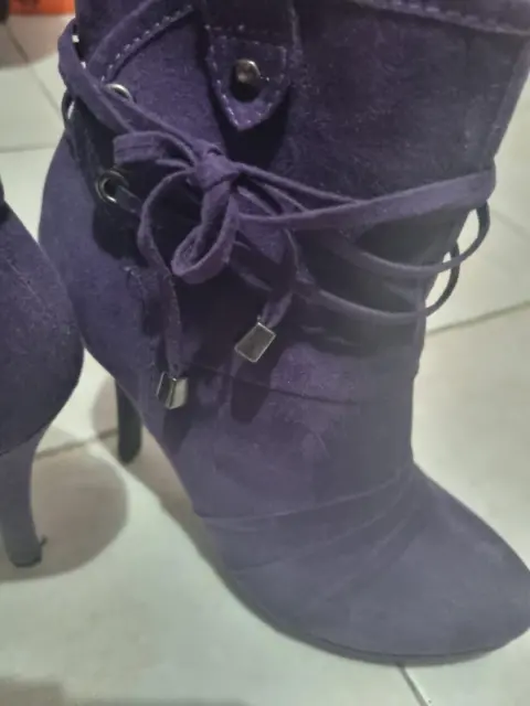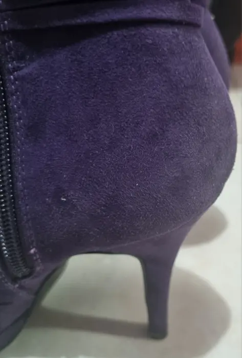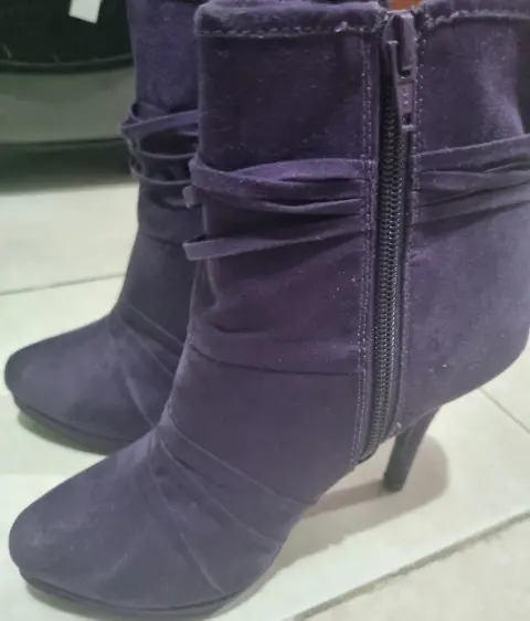 Lindas botitas de tacón alto color moradas sin detalles puestas una vez