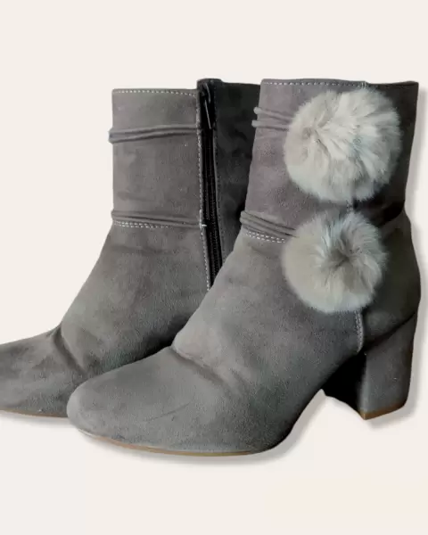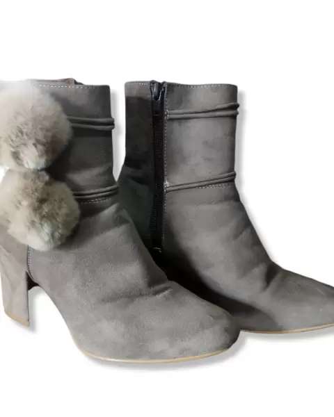 Botines marca EFE , COLOR BEIGE CON POMPONES QUE SE PUEDEN PONER Y QUITAR A TU GUSTO TACON NO TAN ALTO COMODAS Y SUAVES .. #4.5