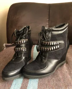 Botines estoperoles. Padrisimos botines westies, número 26.5cm, altura 10cm, tacón tipo cuña, por lo que no cansan nada. Tienen agujeta y broche de velcro que le da un toque padrisimo!