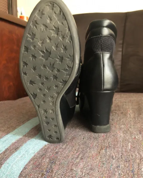 Padrisimos botines westies, número 26.5cm, altura 10cm, tacón tipo cuña, por lo que no cansan nada. Tienen agujeta y broche de velcro que le da un toque padrisimo!