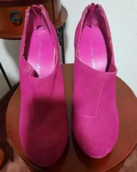 Botines fushia. Talla: 26 tacon alto pero muy comodo por la plataforma, son color bugambilia de gamusa el tacon tiene una forma muy original