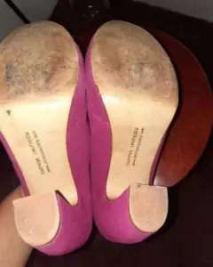 Talla: 26 tacon alto pero muy comodo por la plataforma, son color bugambilia de gamusa el tacon tiene una forma muy original