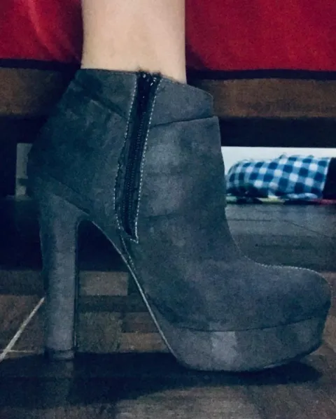 Botines gris oxford. Lindos botines gris oxford tipo gamuza. Talla 24 1/2, altura: 13 cm. Están en muy buen estado y se ven increíbles con jeans, faldas o vestidos.