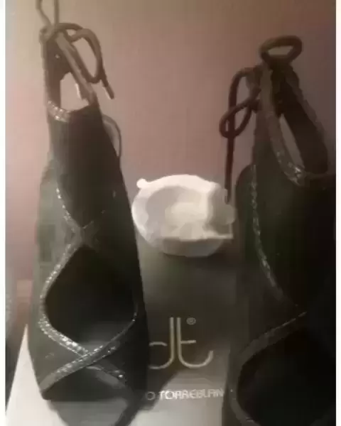 Marca : Diego TorreblancaTextura : Nubuck con ribete de imitación piel víbora.Color : NegroTacón : 12 cms.Detalle de cintas con herraje doradoSe entrega sanitizadoTiene caja de zapatos original