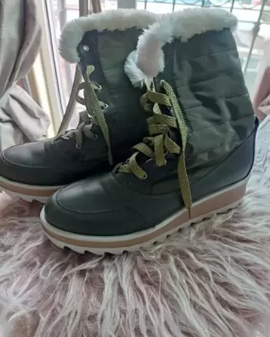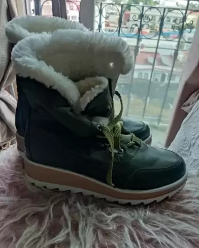 Botines verdes invernales super calientitos. Usados una vez. Talla 6 mexicano.