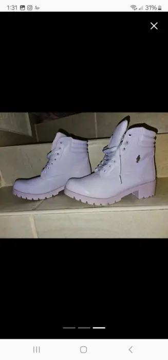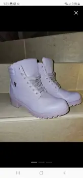 Botines lila. Talla 6Solo una puesta , sin detalles .Están muy cómodos, pero fueron un regalo y me aprietan un poco. Yo soy 6.5